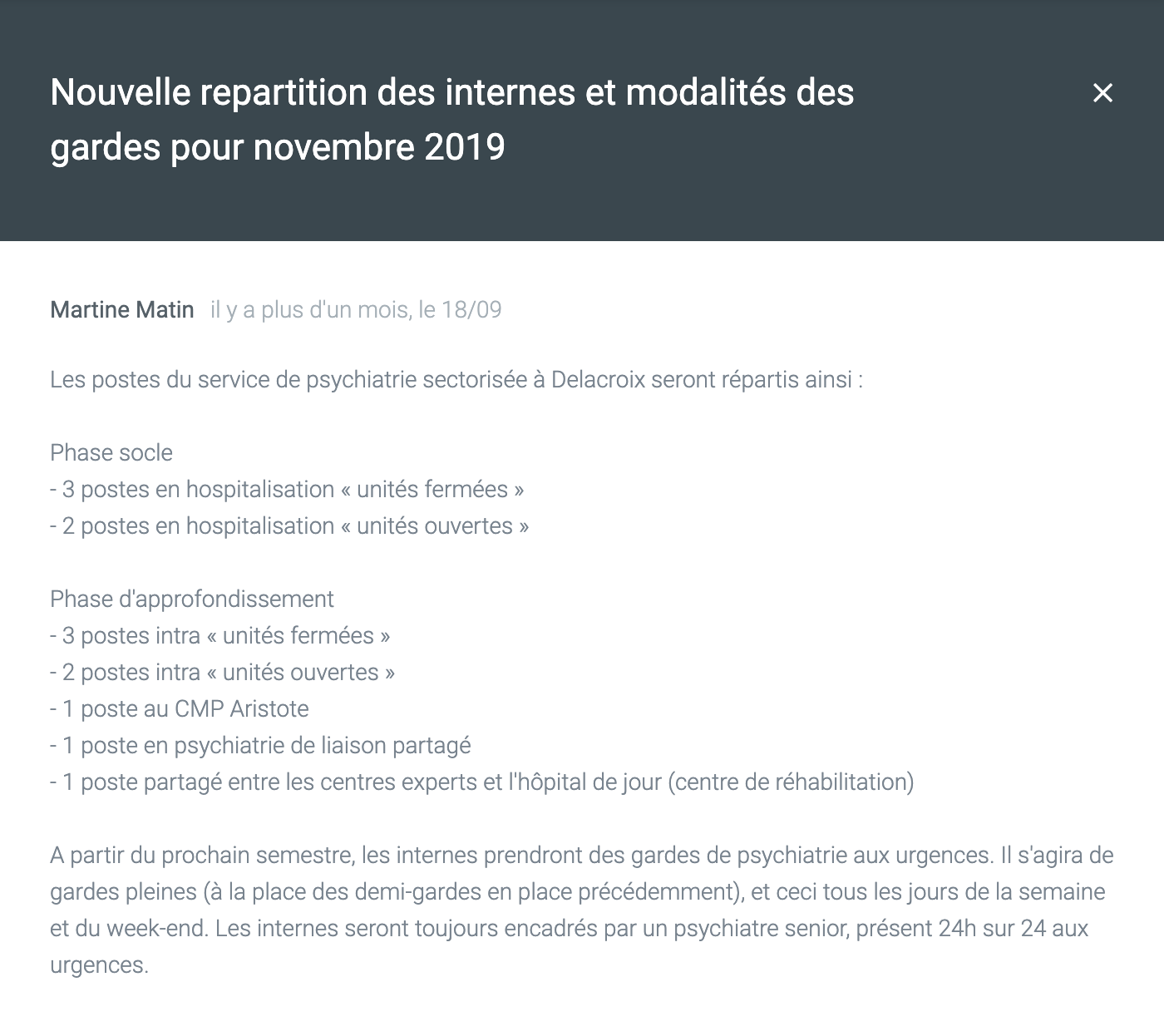 Tout le monde peut contribuer aux publications, et surtout les chefs de service. Les publications s’affichent en bonne place pour permettre de diffuser des informations aux internes.