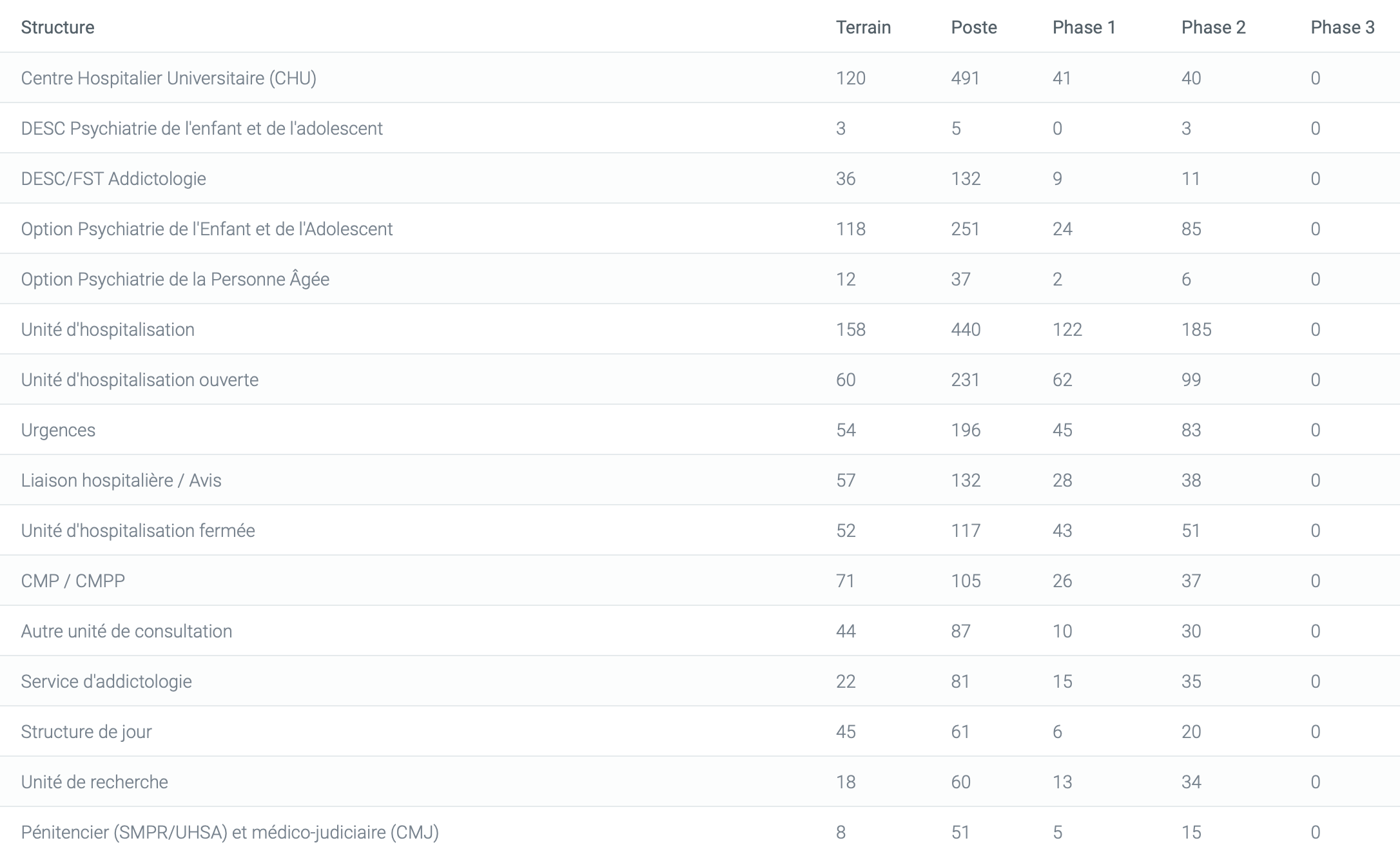 Allez plus loin en consultant votre offre de stage par type de structures, lesquelles sont indiquées par les internes en remplissant leurs évaluations. Cela vous offre une opportunité supplémentaire d’évaluer la pertinence de l’offre de formation sur le territoire. On vous prévient, avec autant de données, vous allez faire des envieux ! 😎