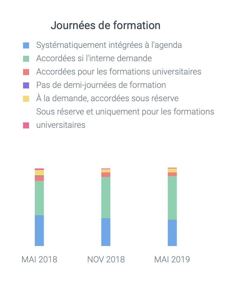 Nous calculons des statistiques à partir des évaluations pour vous permettre d’analyser et de surveiller le niveau de formation et les conditions de travail en stage ou en garde de vos internes. Nous proposons une série de filtres pour vous concentrer au besoin sur un DES, une phase et même un établissement. Et avec le temps, vous pourrez comparer votre évolution de semestre en semestre, sans effort.