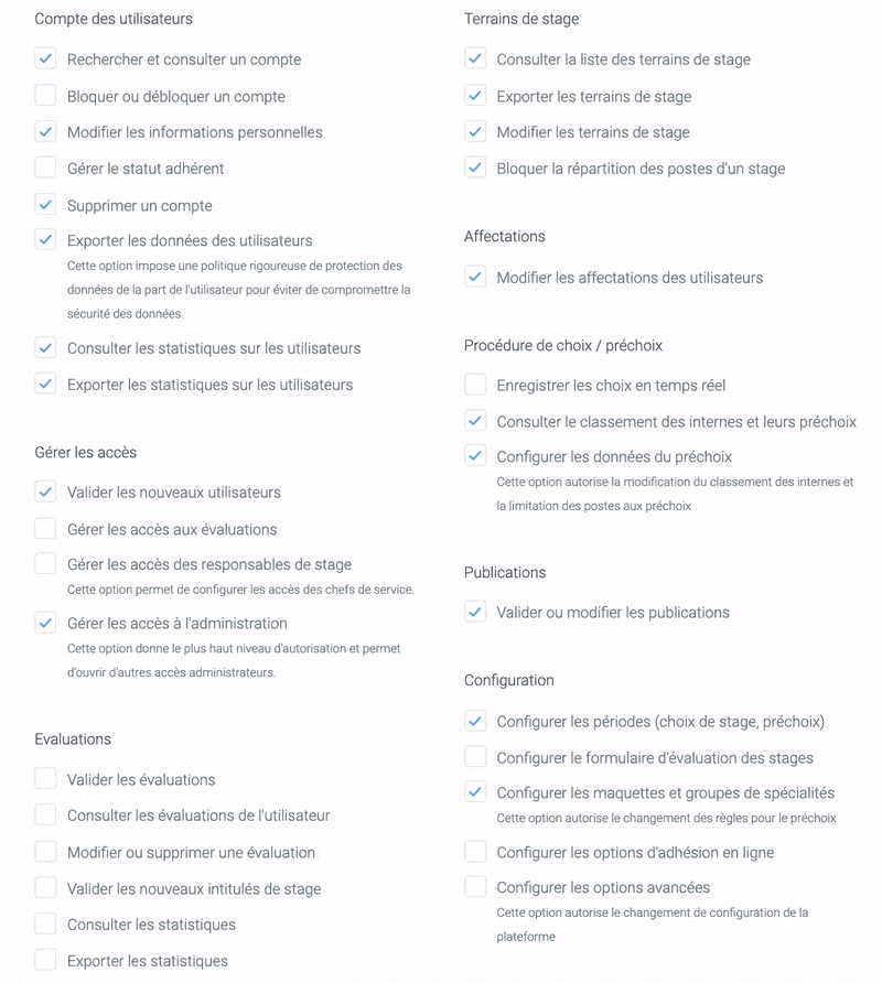 Vous restez maître des accès à ouvrir sur la plateforme. Vous pouvez créer des accès administrateurs pour permettre l’accès à une partie ou l’ensemble des outils et des données. Créez ainsi des accès pour tous vos collaborateurs : référents de spécialité, coordonnateur, etc. Un accès n’est ouvert que pour une période de temps, que vous définissez vous même.