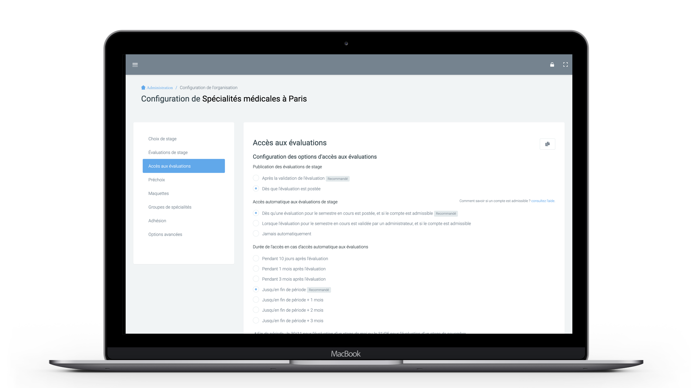 Publication des évaluations avant validation